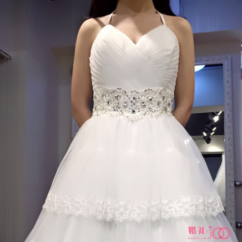 挂脖领头尾婚纱修身显瘦版蕾丝